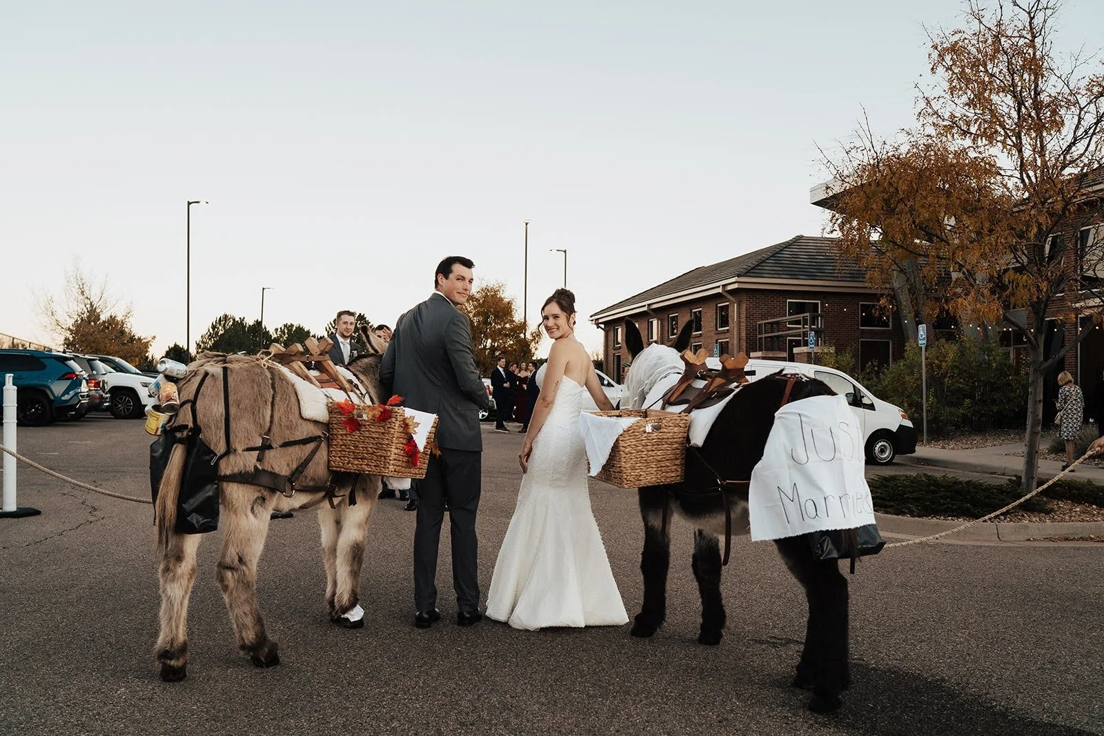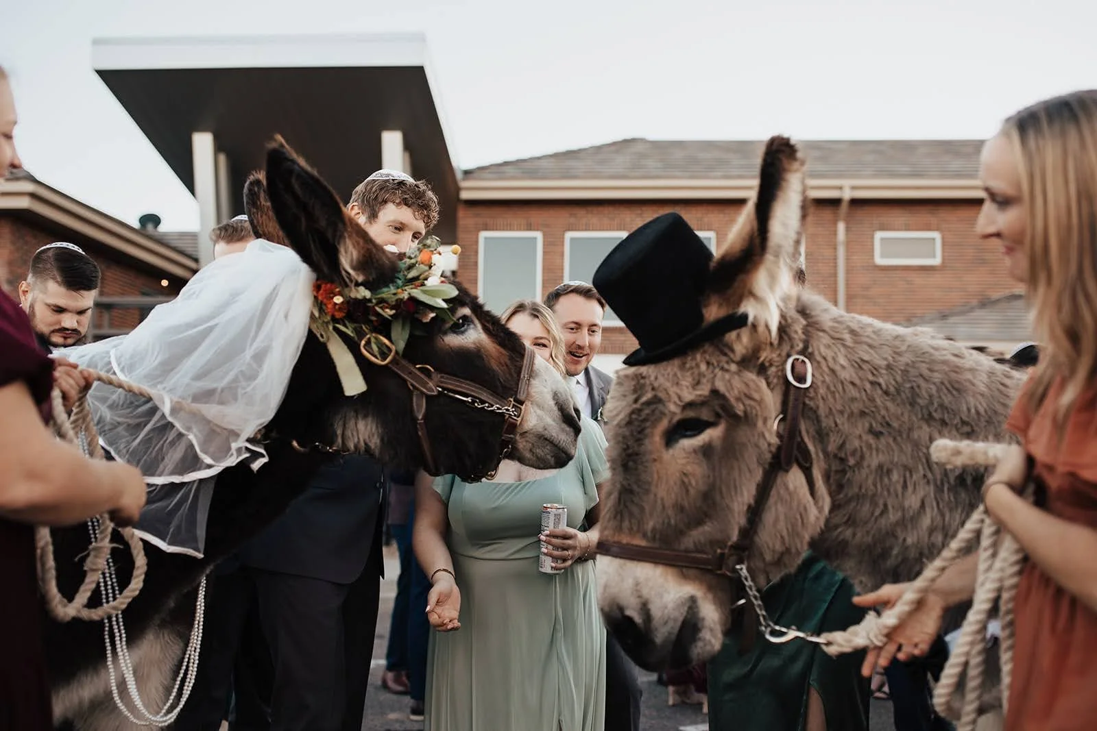 Every donkey arrives clean, relaxed, and beautifully presented, outfitted with event-appropriate tack and beverage baskets designed for both function and aesthetics. Whether greeting guests before a ceremony or mingling during cocktail hour, our donkeys are quiet crowd-pleasers who bring warmth and personality to any setting.